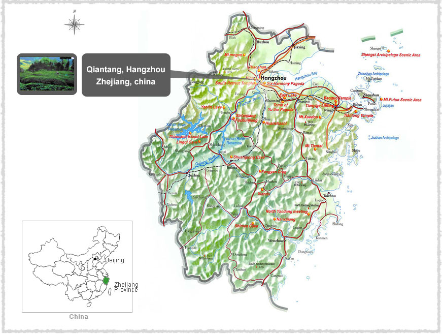 The Qiantang production area is surrounded by "three rivers and one lake", namely Qiantang River, Fuchun River, Xin'an River and Qiandao Lake.