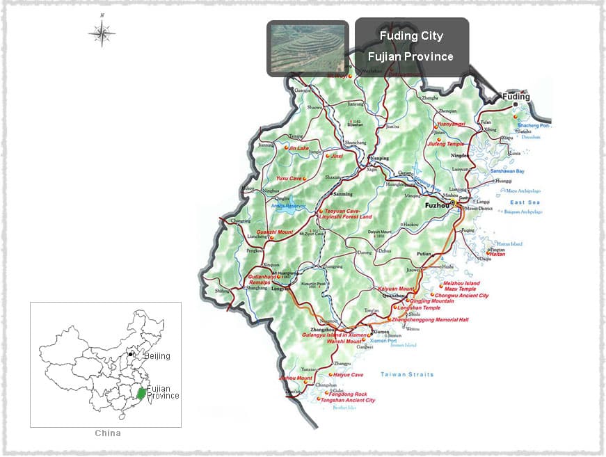 This Jasmine Dragon Pearls Green Tea is produced in Fuding, a famous tea production region located in the northeastern area of the Fujian Province.