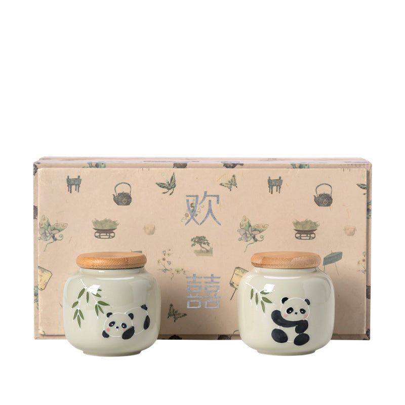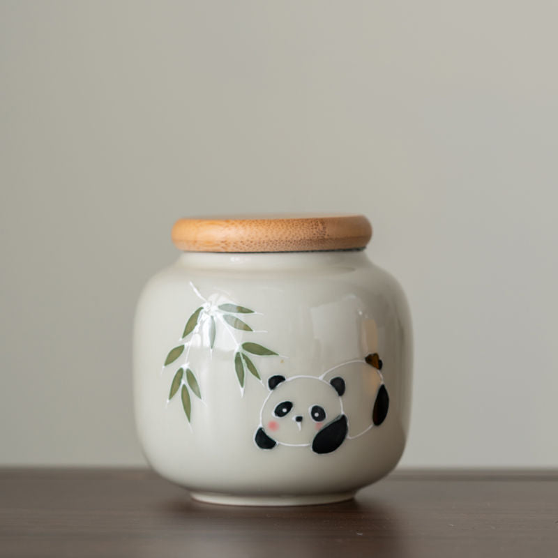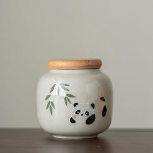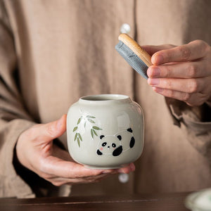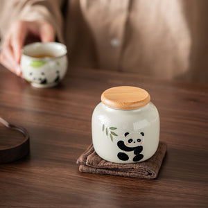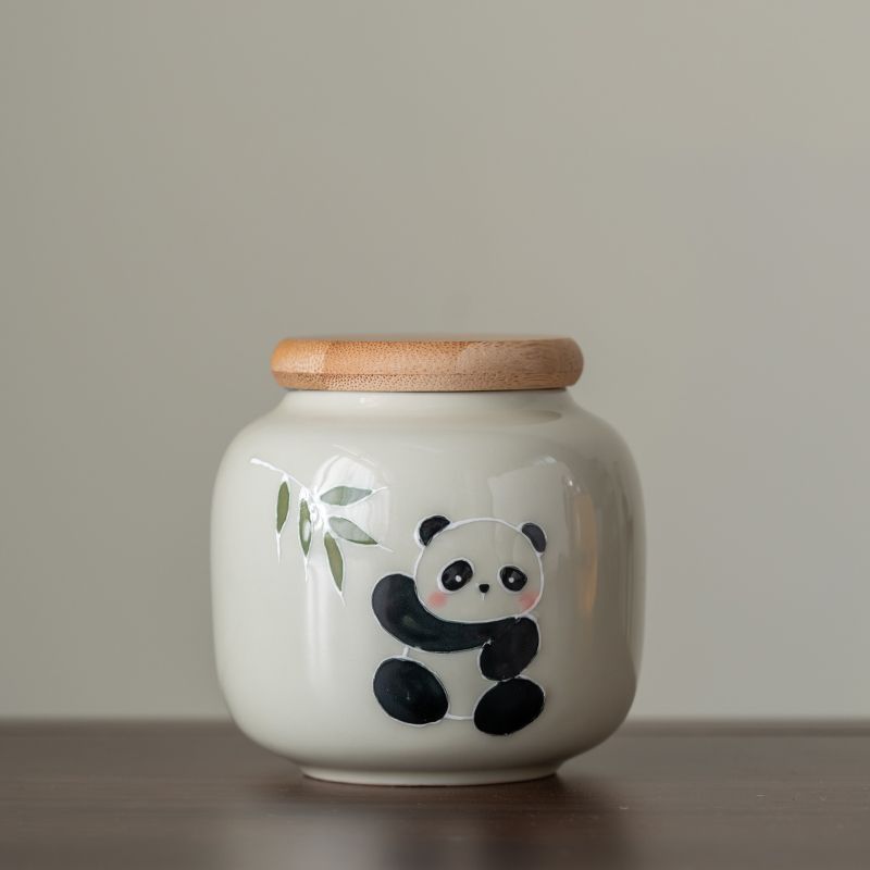 Grass and wood ash hand-painted panda sealed tea can, convenient ceramic tea can storage