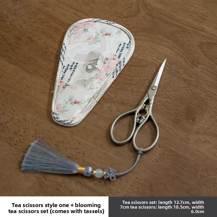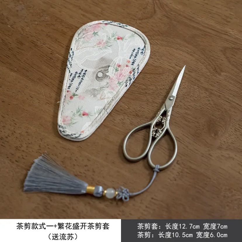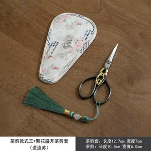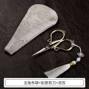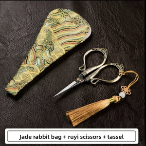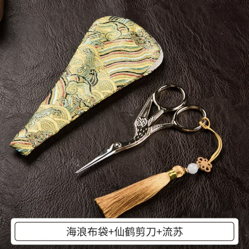 cloth bag + flower scissors gold + tassel, cloth bag + flower scissors black + tassel, cloth bag + crane scissors + tassel, cloth bag + Ruyi scissors + tassel