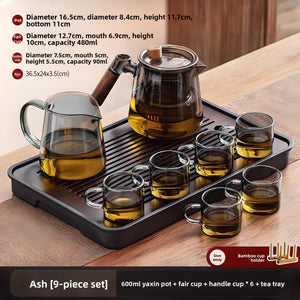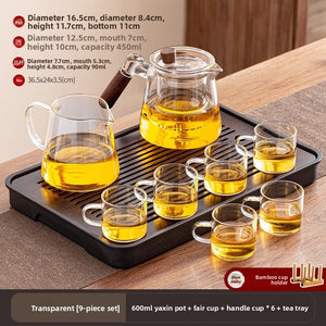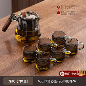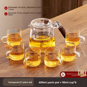 Yaxing pot transparent gun handle set [pot + 6 small handle cups + solid wood cup holder], Yaxing pot transparent black gun handle set [pot + 6 small handle cups + solid wood cup holder] |