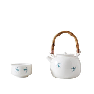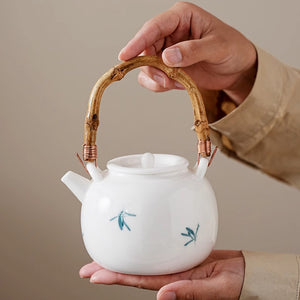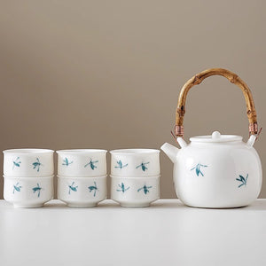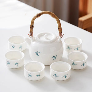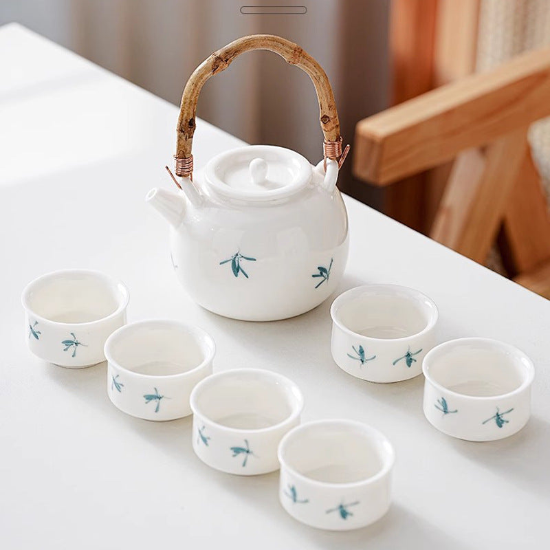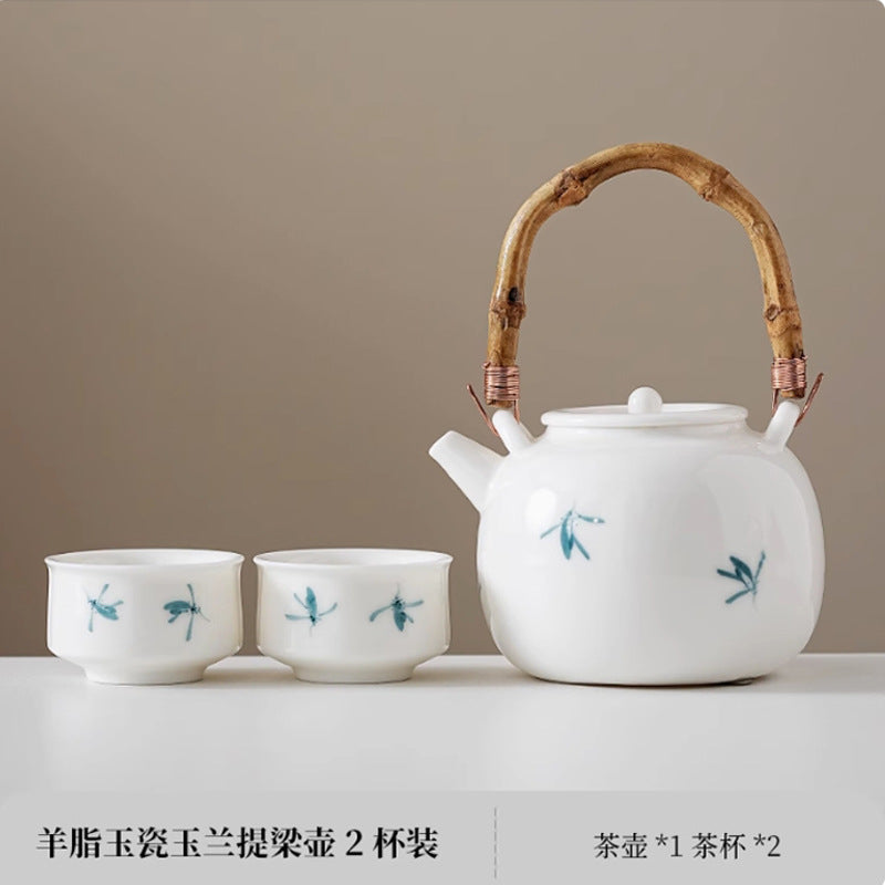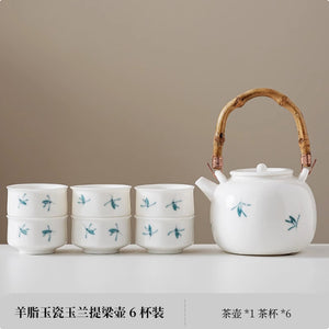 Suet jade hand-painted magnolia flower jacquard pot, ceramic kung fu tea set
