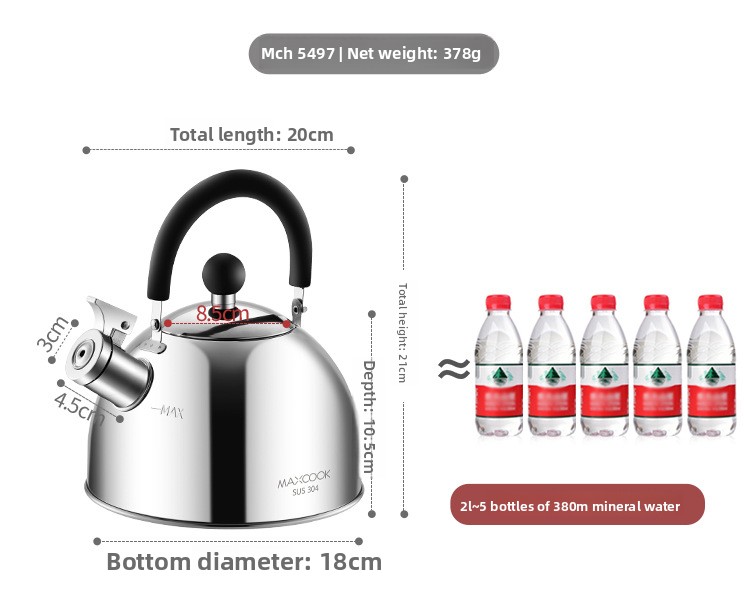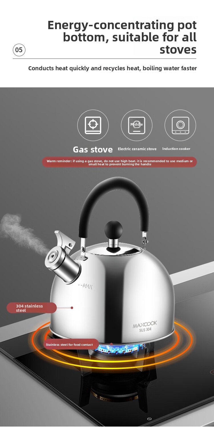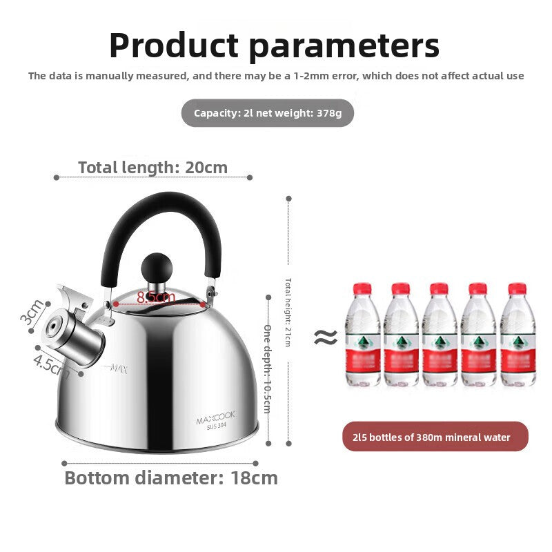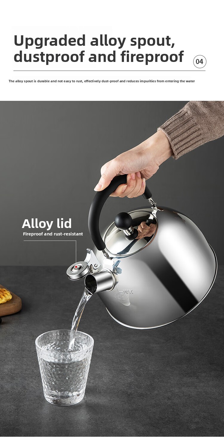 Beauty Kitchen Kettle 304 Stainless Steel Kettle 1.5L Thickened Tone, Zinc Alloy Spout MCH5480